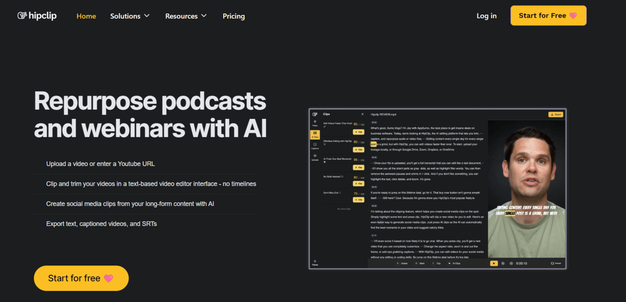 Hipclip is an AI-powered video editor that allows you to trim, caption, and repurpose large audio or video files. You can upload files directly from your computer or import them from cloud storage services like Google Drive, Dropbox, and OneDrive. Hipclip creates a text transcript of your media for easy editing and provides metrics on speech patterns for smooth talking. It also features automatic subtitle generation making your content more accessible and customizable in terms of font style, background, and visual effects.